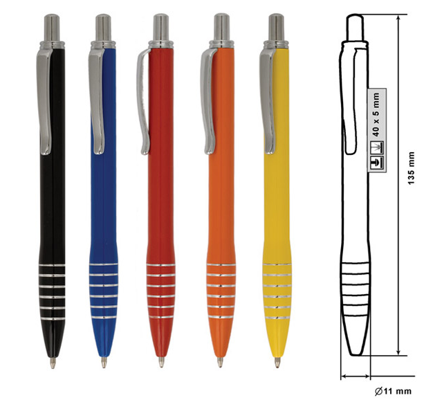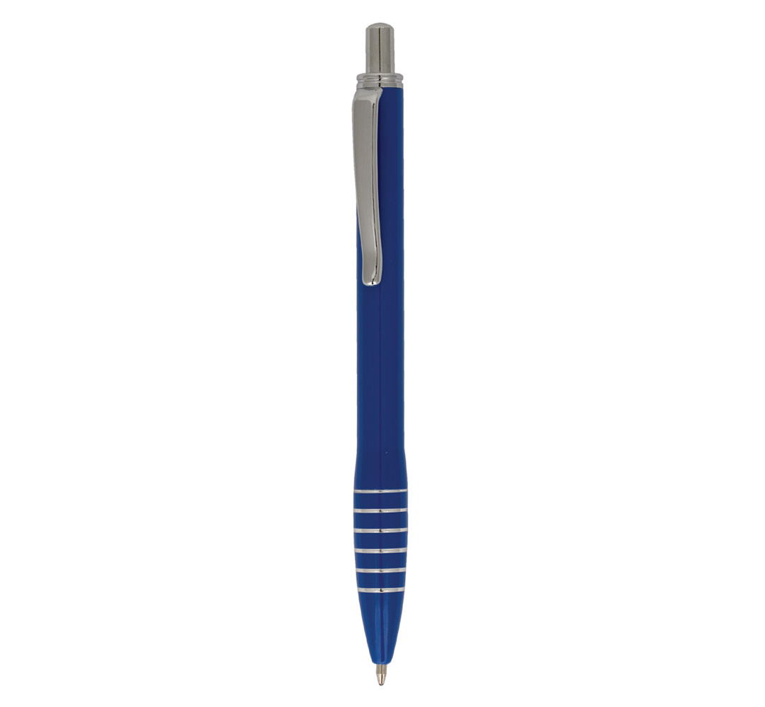 Metal ballpoint pen, plastic Jumbo refill, blue ink.