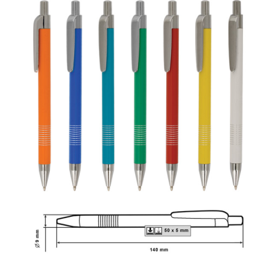 Metal ballpoint pen, slim plastic refil, blue ink.