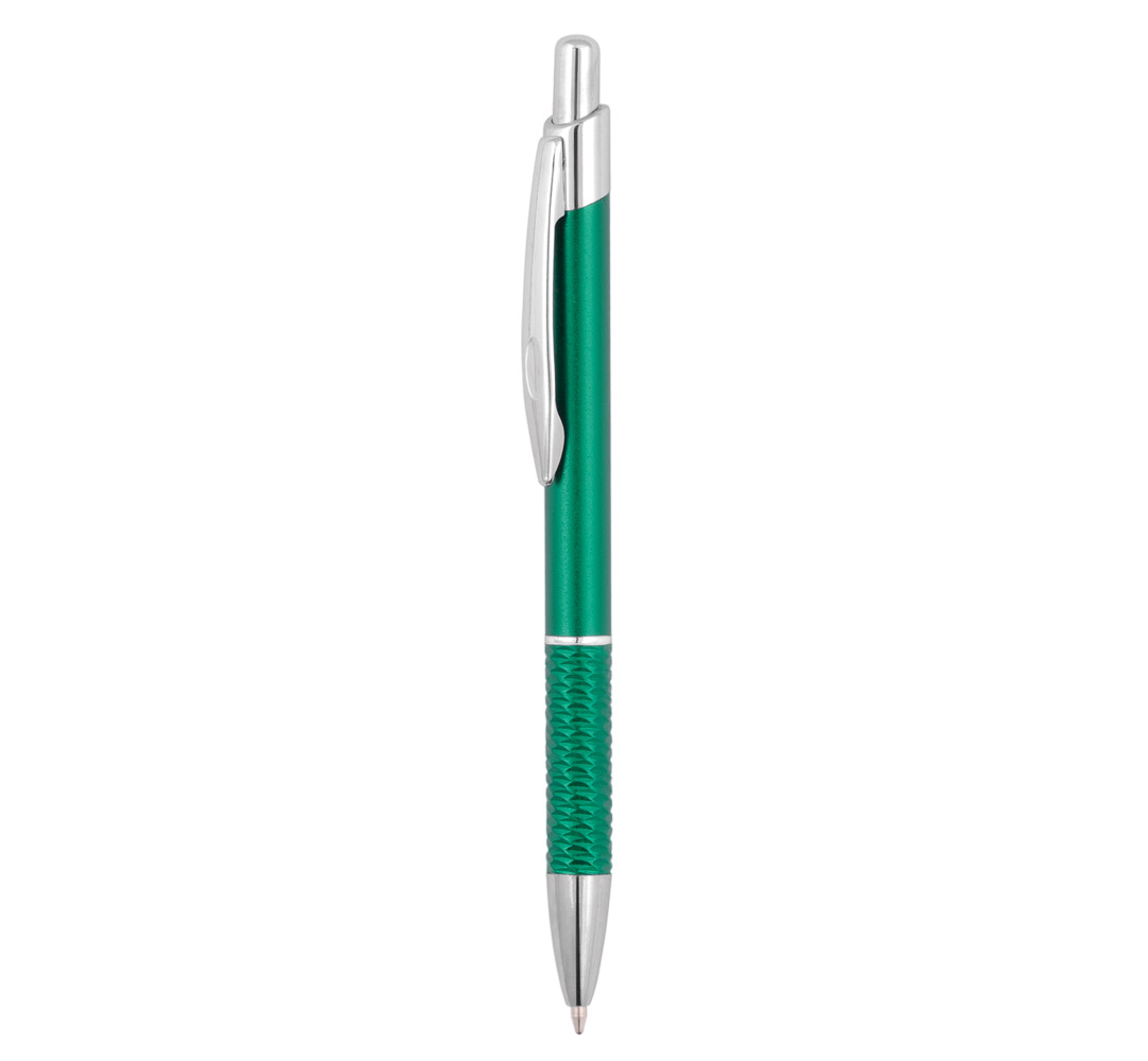 Metal ballpoint pen, plastic Jumbo refill, blue ink.