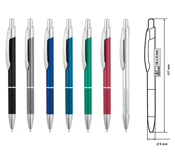 Размер на артикула: Ø9х137 mm. Печатаемо поле: 35х5 mm. Печат: тампонен, ситопечат, гравиране.