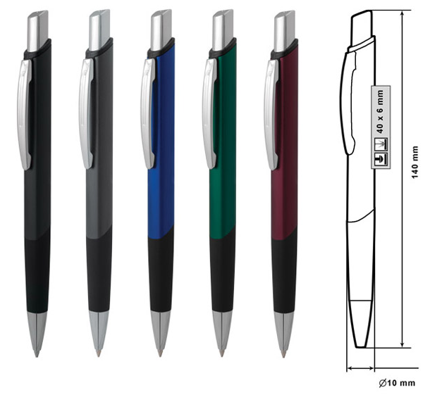 Metal ballpoint pen, plastic Jumbo refill, blue ink.