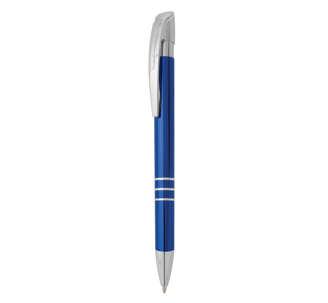 Metal ballpoint pen, plastic Jumbo refill, blue ink.
