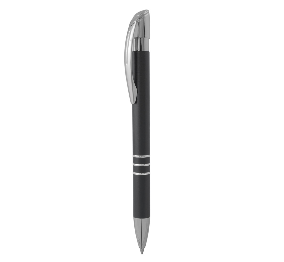 Metal ballpoint pen, plastic Jumbo refill, blue ink.