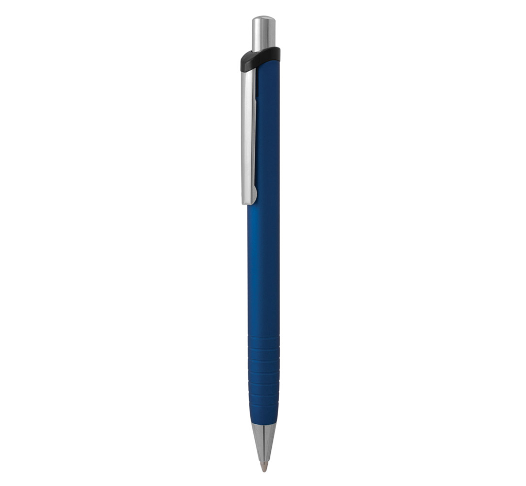 Metal ballpoint pen, plastic Jumbo refill, blue ink.