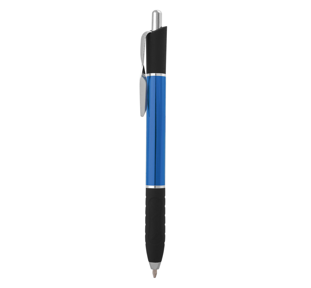 Metal ballpoint pen, slim plastic refill, blue ink.
