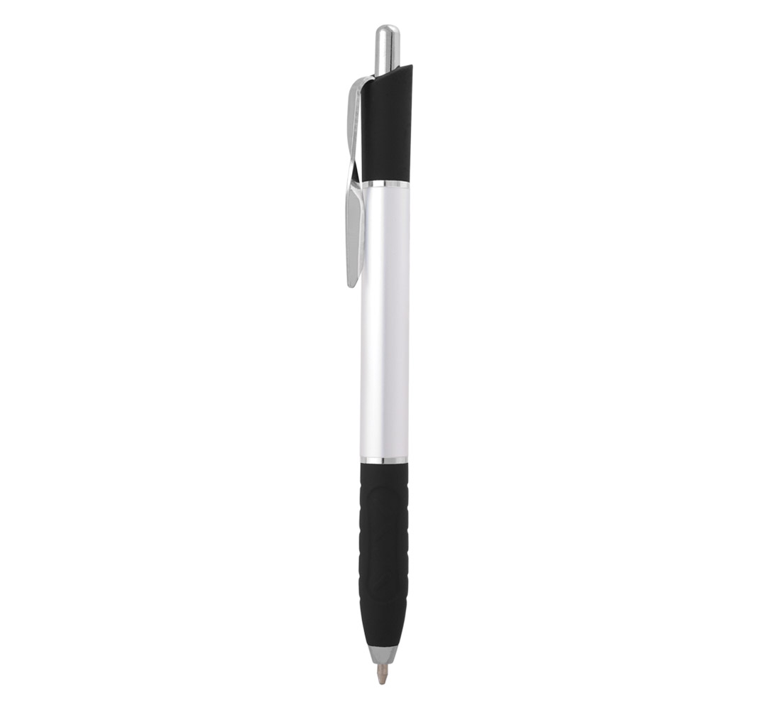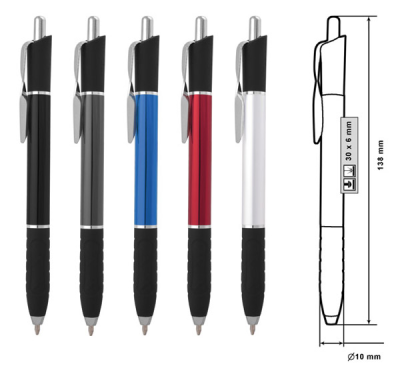 Metal ballpoint pen, slim plastic refill, blue ink.