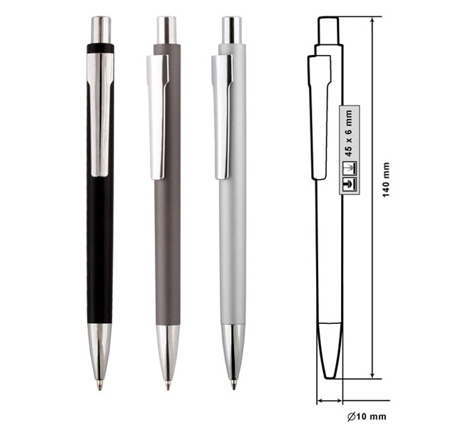 Metal ballpoint pen, plastic Jumbo refill, blue ink.