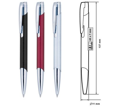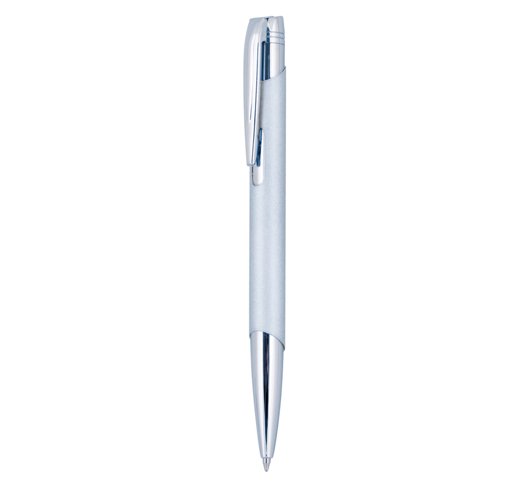 Metal ballpoint pen, plastic Jumbo refill, blue ink.