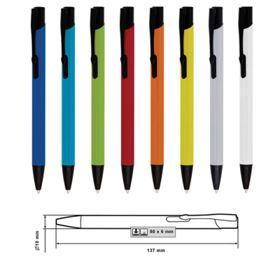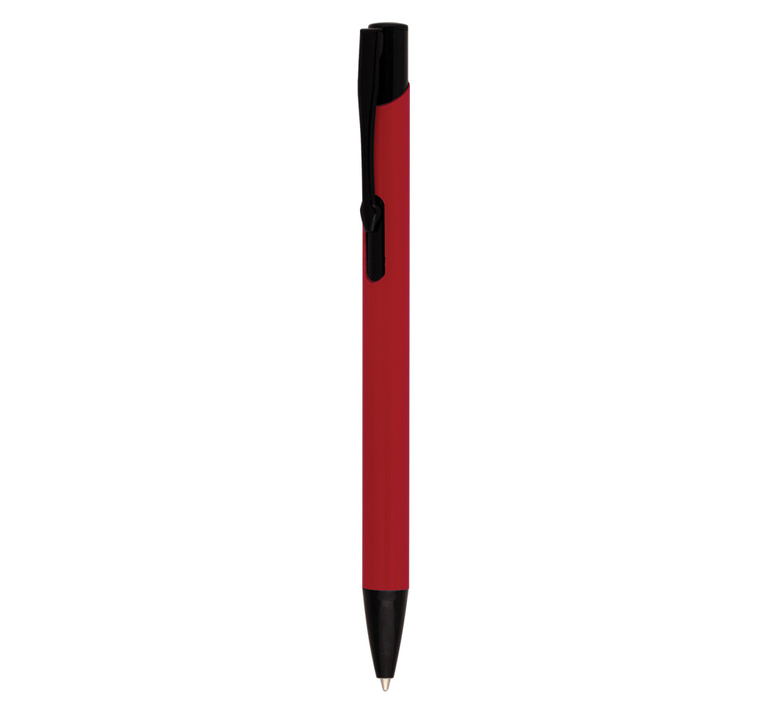 Metal ballpoint pen, slim plastic refill, blue ink.