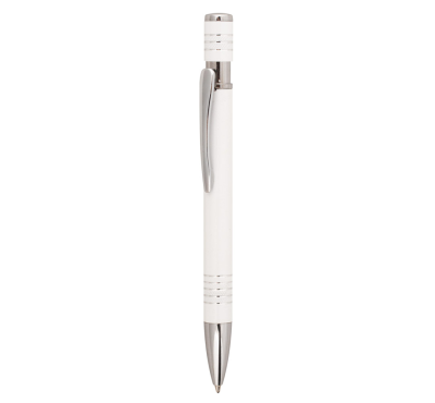 Metal ballpoint pen, plastic Jumbo refill, blue ink.