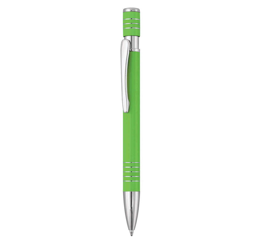 Metal ballpoint pen, plastic Jumbo refill, blue ink.