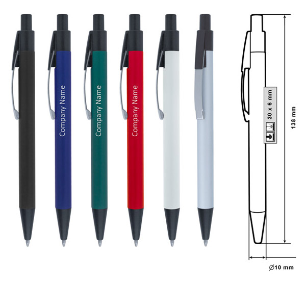 Metal ballpoint pen, plastic Jumbo refill, blue ink.