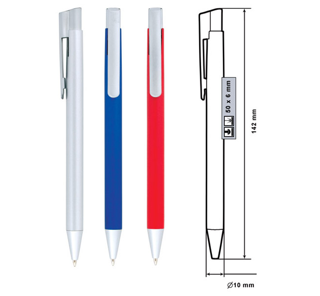 Metal ballpoint pen, plastic Jumbo refill, blue ink.