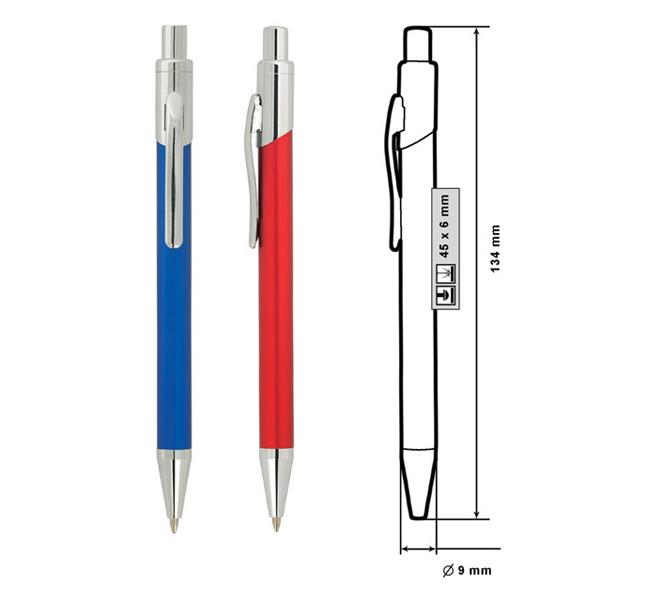 Metal ballpoint pen, plastic Jumbo refill, blue ink.