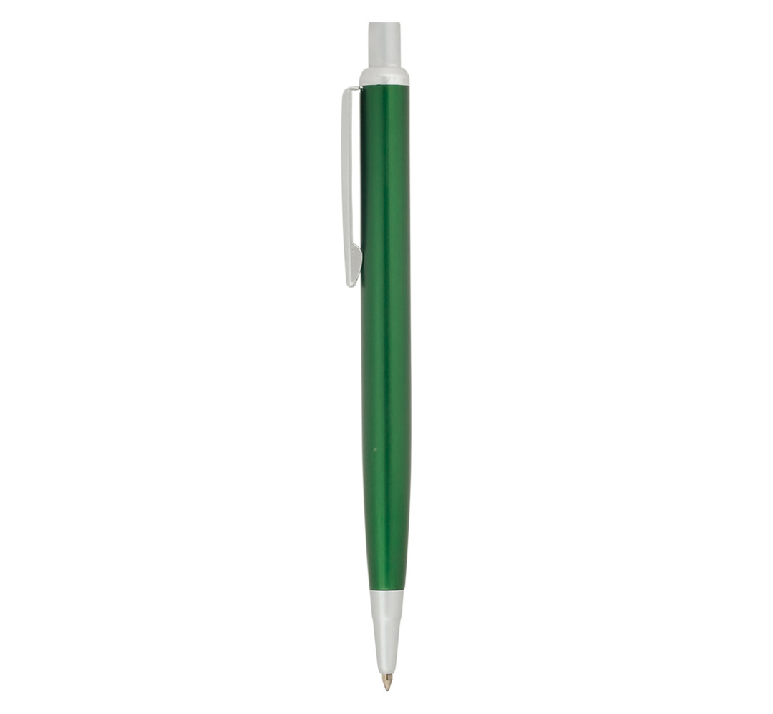 Metal ballpoint pen, slim plastic refill, blue ink.