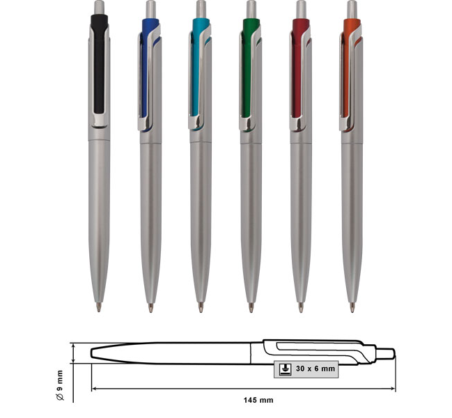 Plastic ballpoint pen, slim plastic refill, blue ink.