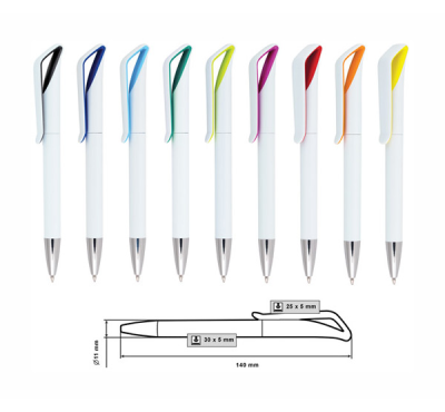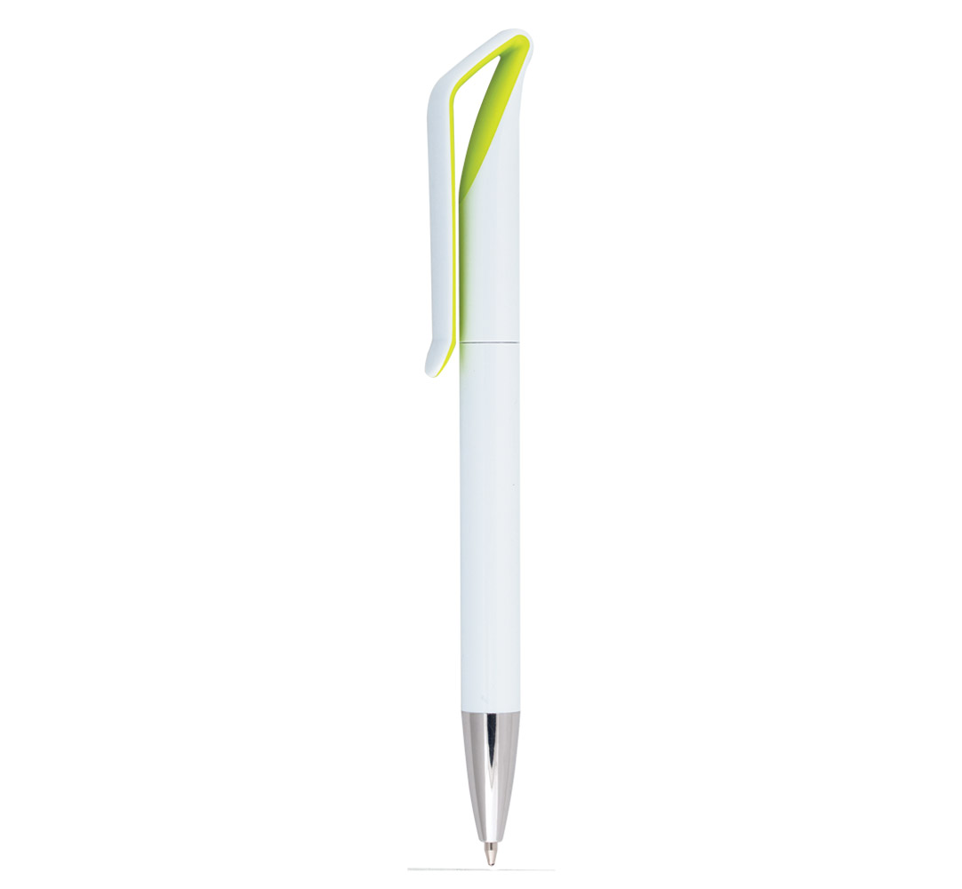 Plastic ballpoint pen, slim plastic refill, blue ink.