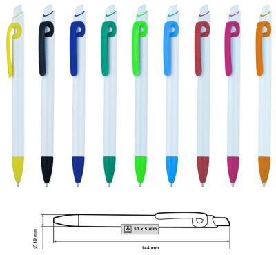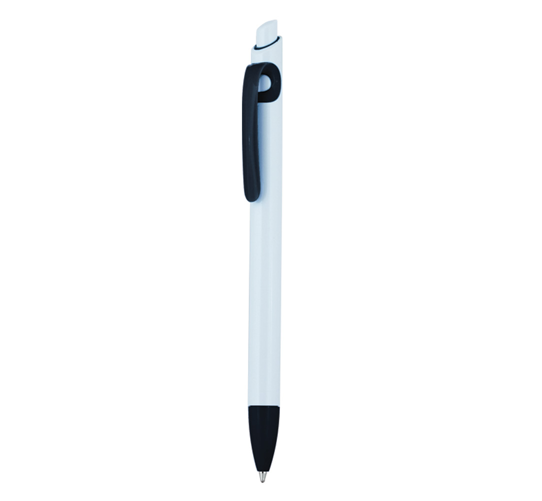 Plastic ballpoint pen, regular refill, blue ink.