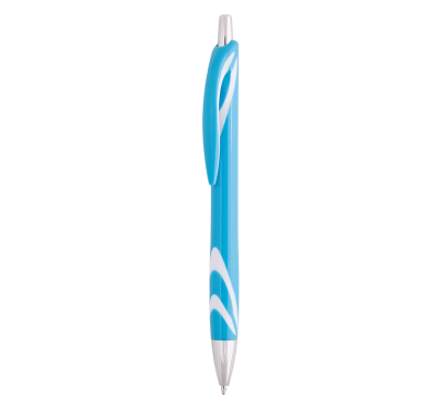 Plastic ballpoint pen, slim plastic refill, blue ink.