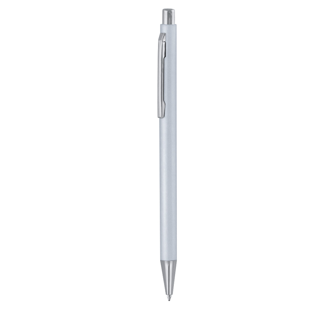 Plastic ballpoint pen, regular refill, blue ink.