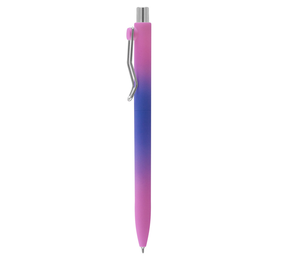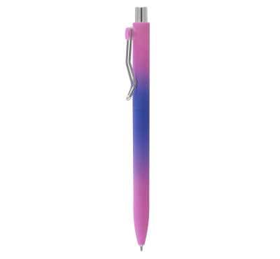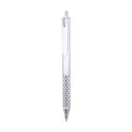 Plastic ballpoint pen, regular gel refill, blue ink.