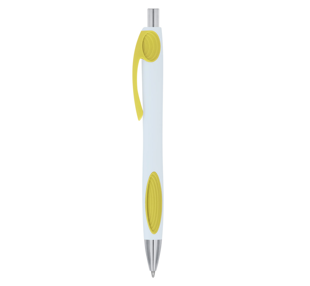 Plastic ballpoint pen, regular refill, blue ink.