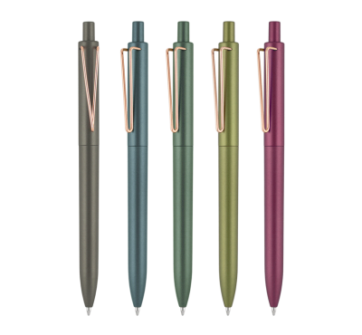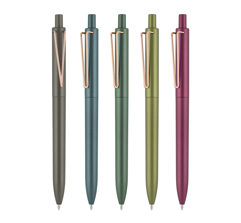 Plastic ballpoint pen, regular refill, blue ink.