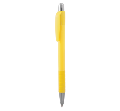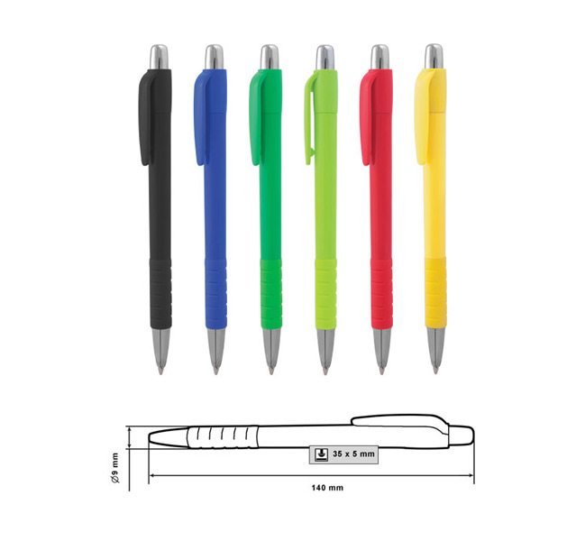 Plastic ballpoint pen, slim plastic refill, blue ink.