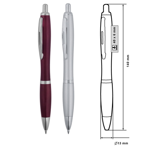 Размер на артикула: Ø13х140 mm. Печатаемо поле: 40х6 mm. Печат: тампонен, ситопечат.