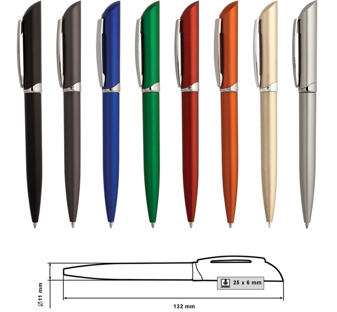 Размер на артикула: Ø11х132 mm. Печатаемо поле: 25х6 mm. Печат: тампонен, ситопечат.