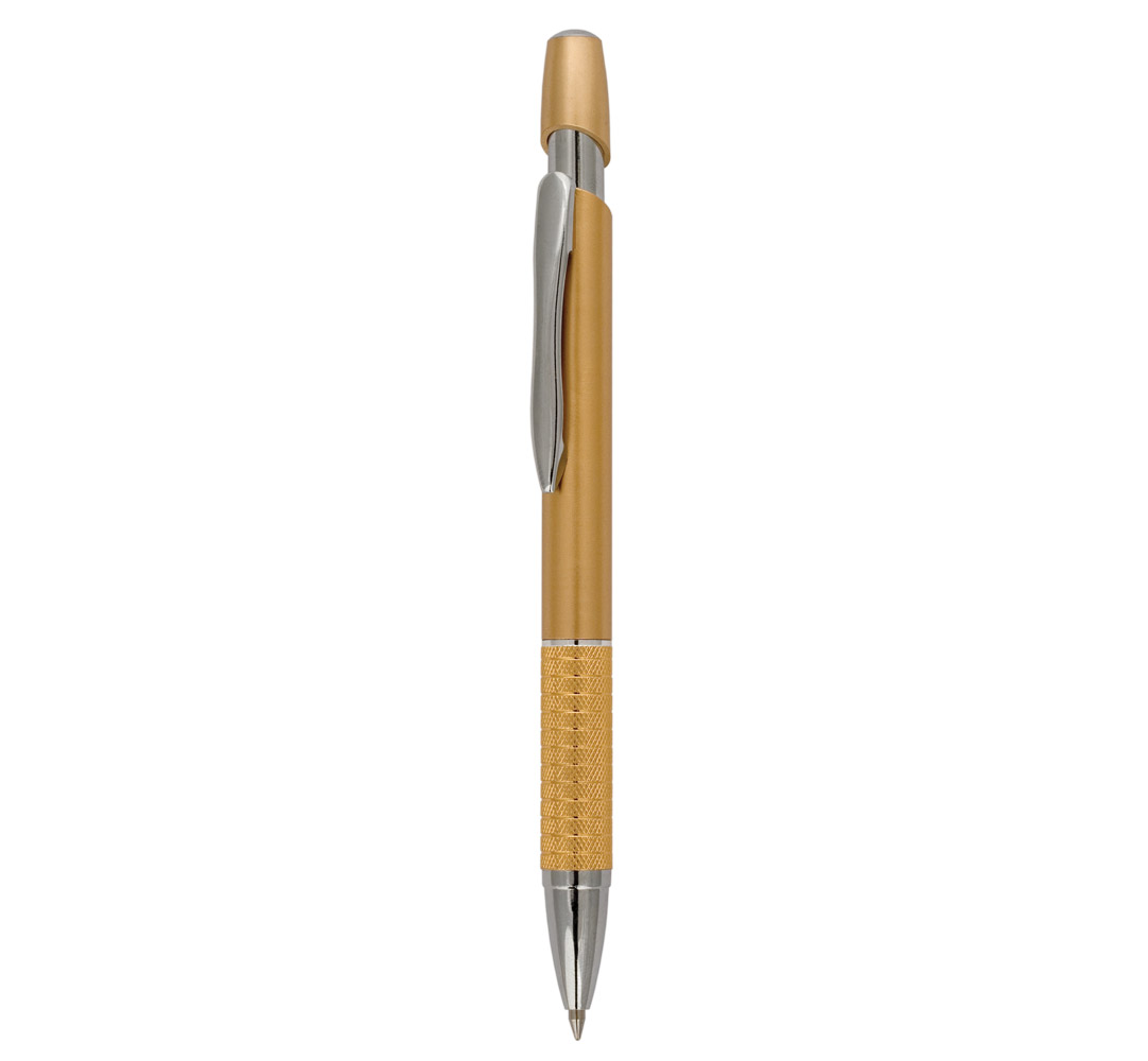 Plastic ballpoint pen, slim plastic refill, blue ink.
