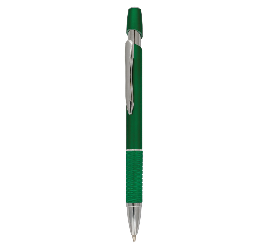 Plastic ballpoint pen, slim plastic refill, blue ink.
