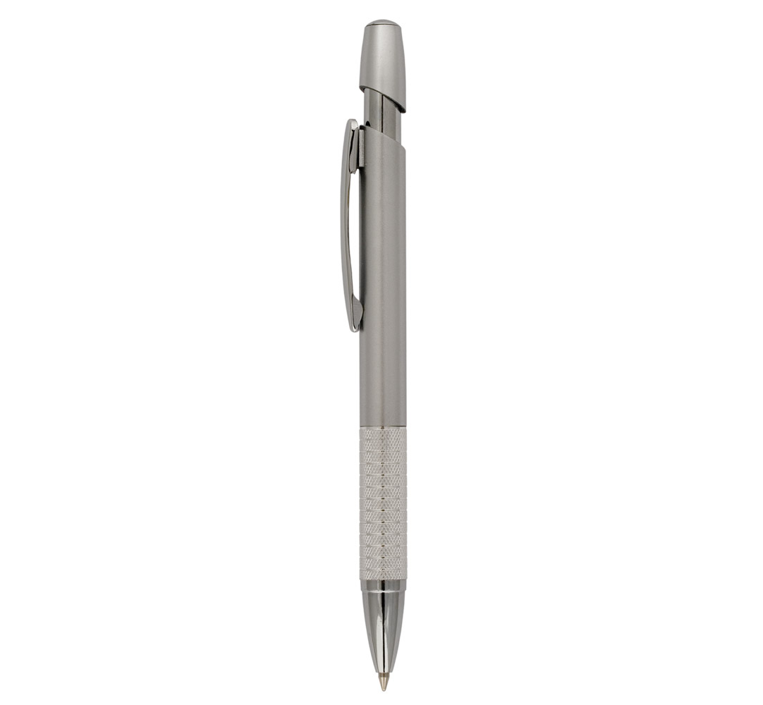 Plastic ballpoint pen, slim plastic refill, blue ink.