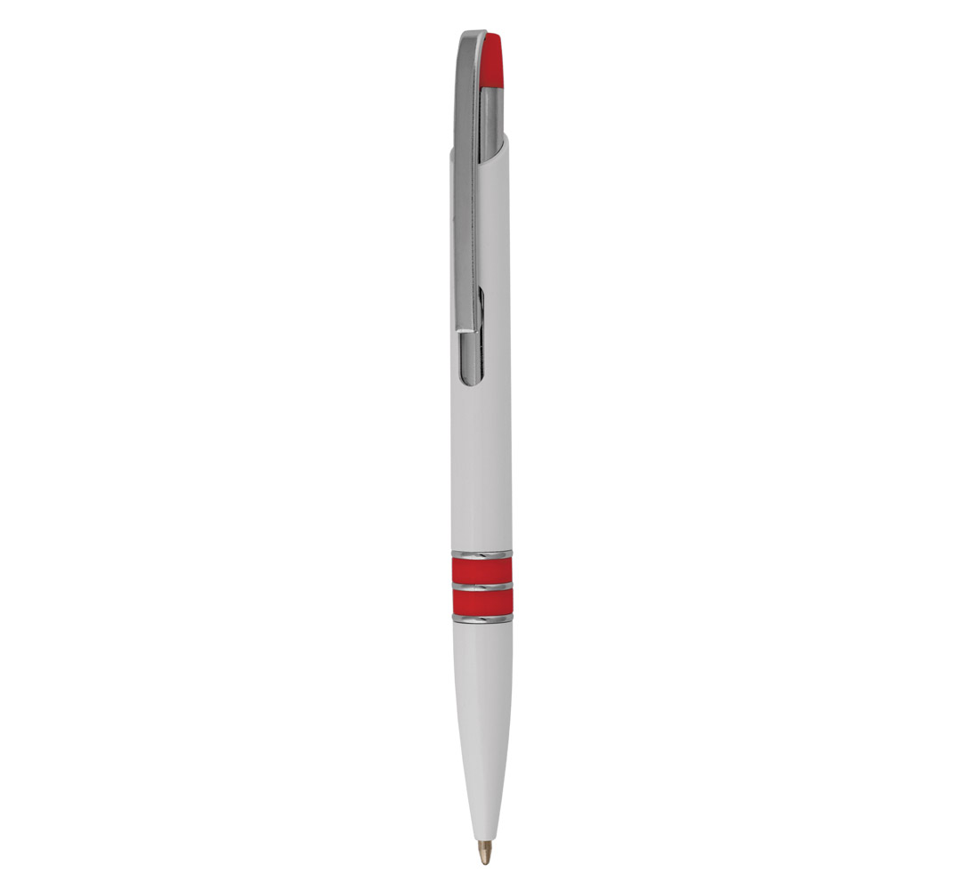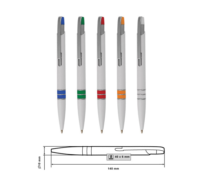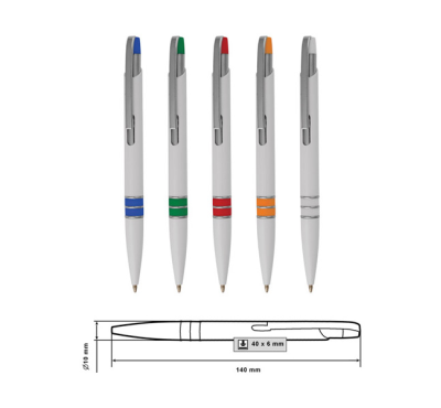 Plastic ballpoint pen, slim plastic refill, blue ink.