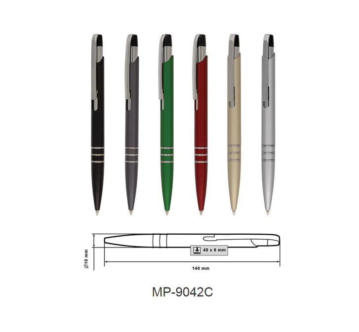 Plastic ballpoint pen, slim plastic refill, blue ink.