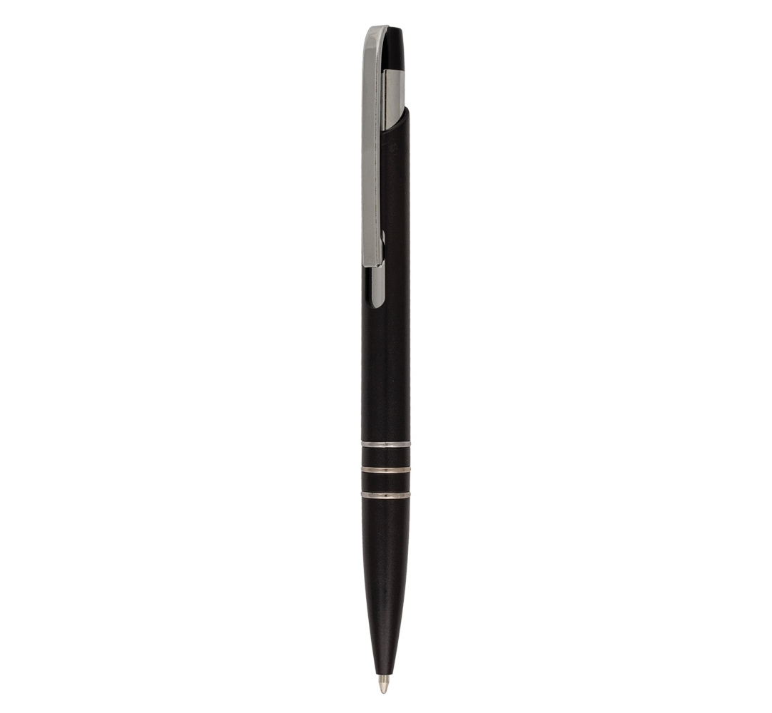 Plastic ballpoint pen, slim plastic refill, blue ink.