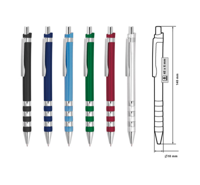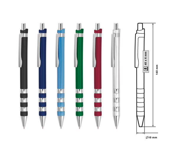 Plastic ballpoint pen, slim plastic refill, blue ink.