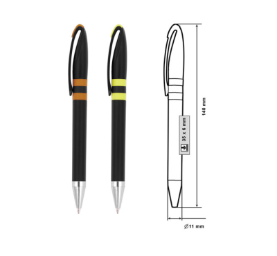 Plastic ballpoint pen, slim plastic refill, blue ink.