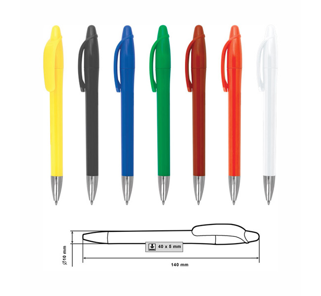 Plastic ballpoint pen, slim plastic refill, blue ink.