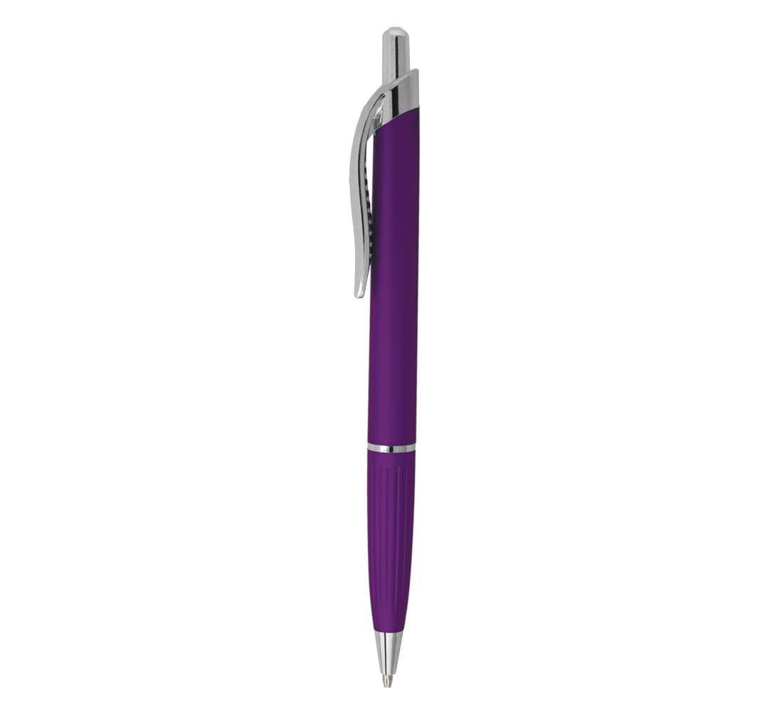 Plastic ballpoint pen, slim plastic refill, blue ink.