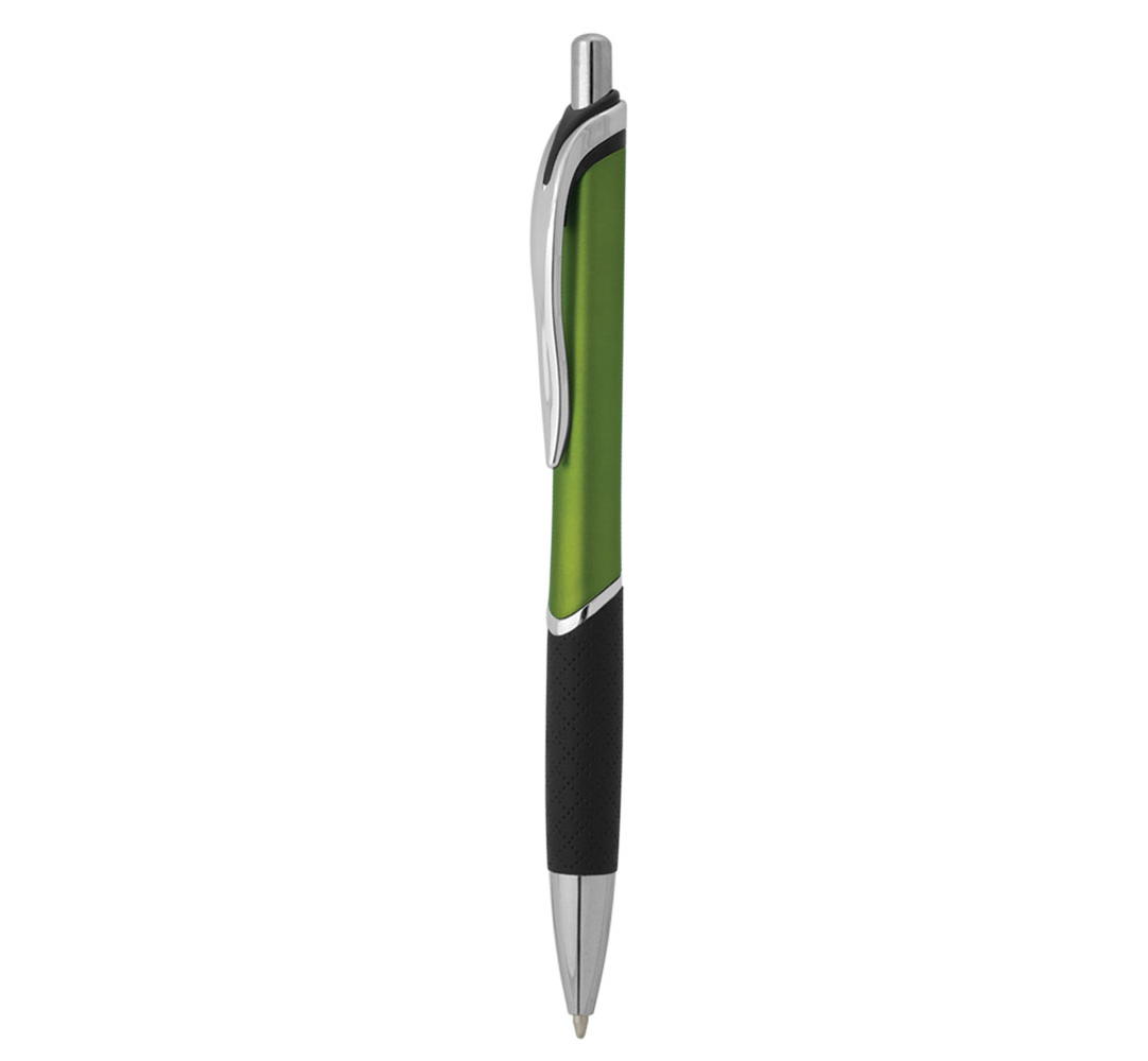 Plastic ballpoint pen, slim plastic refill, blue ink.