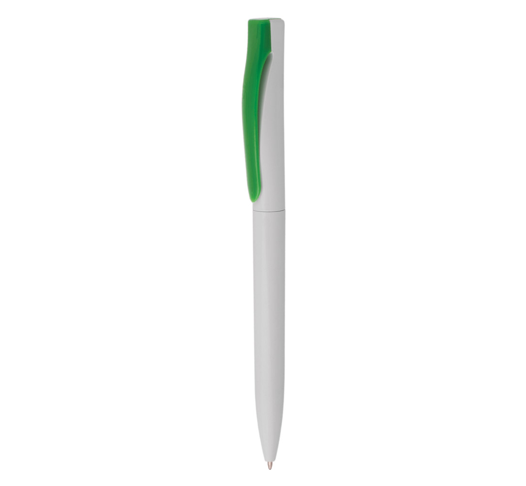 Plastic ballpoint pen, slim plastic refill, blue ink.
