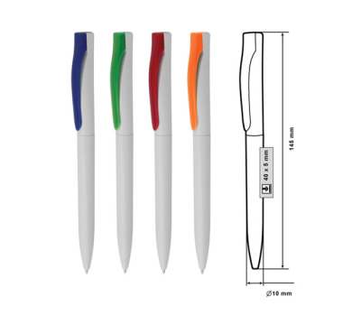Plastic ballpoint pen, slim plastic refill, blue ink.