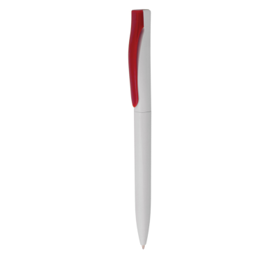 Plastic ballpoint pen, slim plastic refill, blue ink.