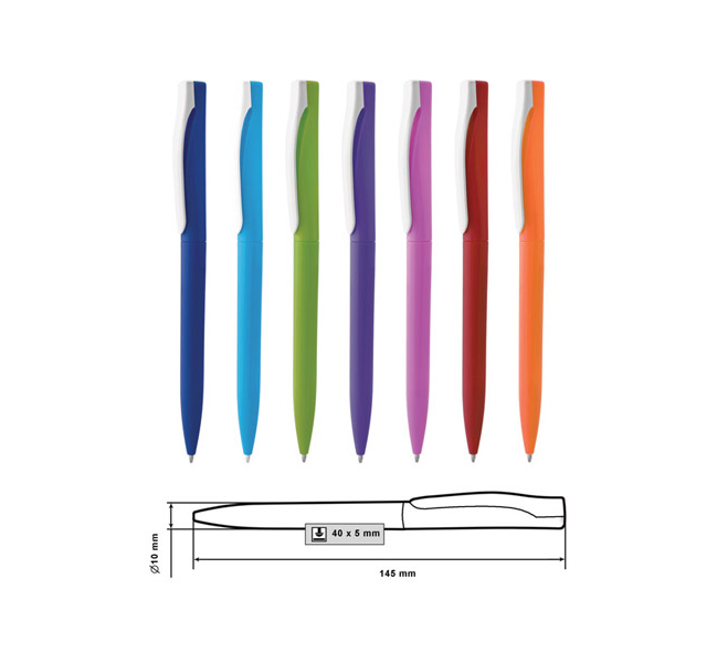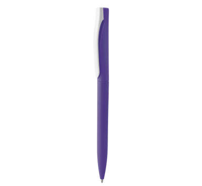 Plastic ballpoint pen, slim plastic refill, blue ink.