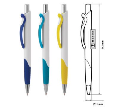Plastic ballpoint pen, slim plastic refill, blue ink.