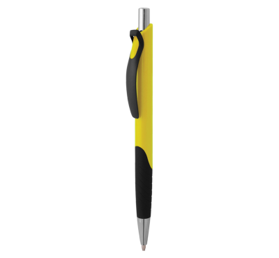 Plastic ballpoint pen, slim plastic refill, blue ink.