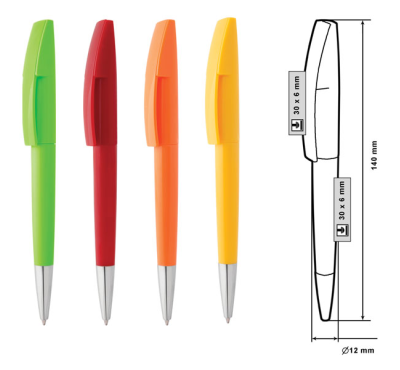 Размер на артикула: Ø12х140 mm. Печатаемо поле: 30х6 mm. Печатаемо поле клипс: 30х6 mm. Печат: тампонен, ситопечат.