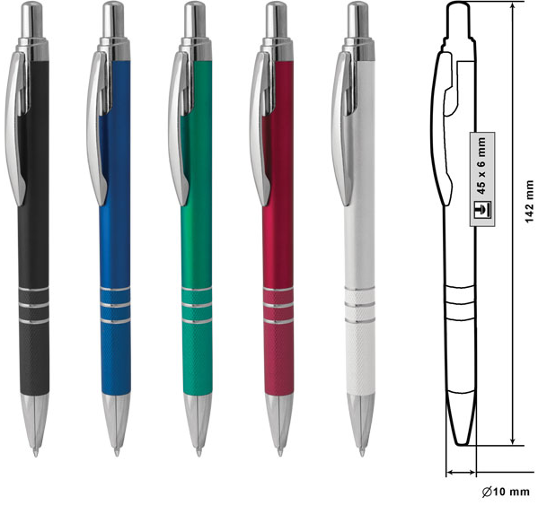Размер на артикула: Ø10х142 mm. Печатаемо поле: 45х6 mm. Печат: тампонен, ситопечат.