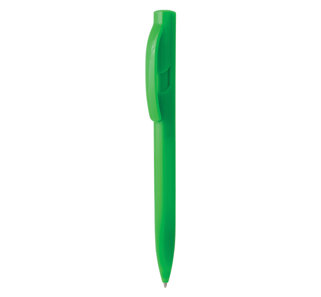 Plastic ballpoint pen, slim plastic refill, blue ink.